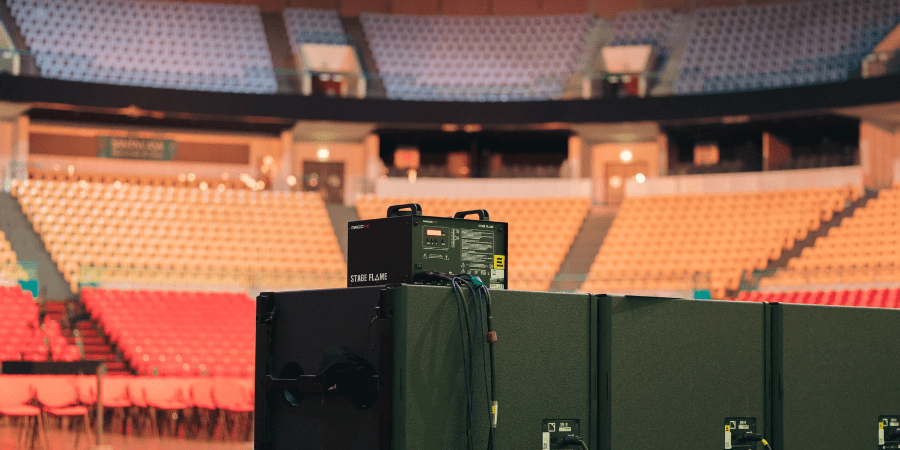 Sistema de chamas profissional e seguro. O Stage Flame pode criar bolas de fogo e grandes chamas. É totalmente controlável por DMX e é desenhado para uso profissional. Permite produzir até 200 chamas com 4m de altura.